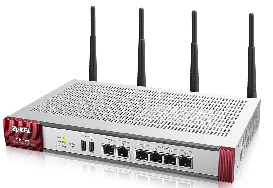Unified Security Gateway, 6 x GbE RJ-45, 2 x USB, 802.11 a/b/g/n, 1000 Mbps firewall throughput, UTM