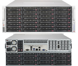 Supermicro SuperStorage Server 5049P-E1CTR36L. Motherboard chipset: Intel C622, Processor socket: LGA 3647 (Socket P), Compatible processor series: Intel® Xeon®. Supported memory types: DDR4-SDRAM, Maximum internal memory: 1000 GB, Maximum RDIMM memory: 192 GB. Storage drive sizes supported: 3.5″, Supported storage drive interfaces: M.2, Serial Attached SCSI (SAS)-3, Serial ATA III, RAID levels: 0, 1, 5, 10. On-board graphics card model: Aspeed AST2500. Copper ethernet cabling technology: 10GBASE-T, LAN controller: Intel® X557, Intel® X722